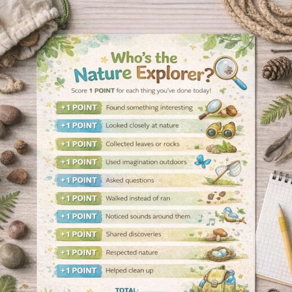 Perfect for families who love the outdoors. Children explore nature through scavenger hunts, observation games, and creative challenges using what they find around them.
