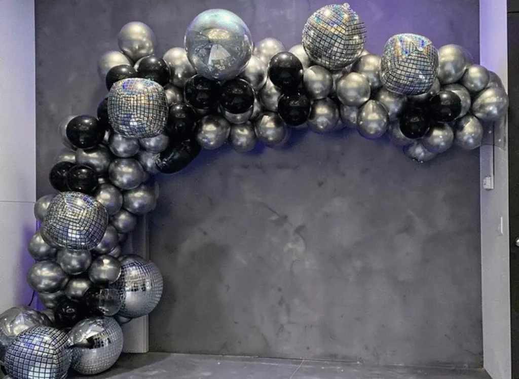 âś” Includes silver, black, and disco foil balloons