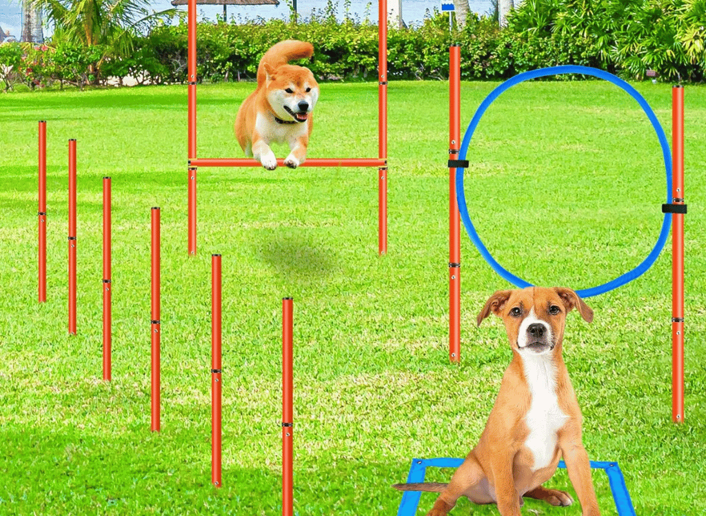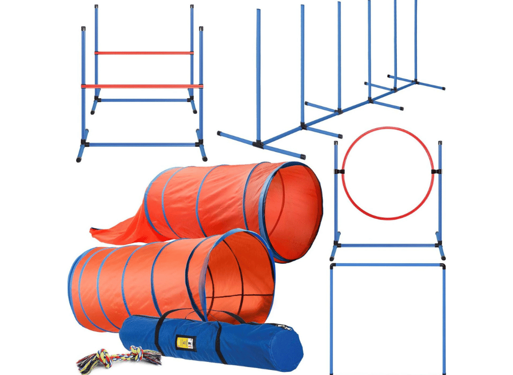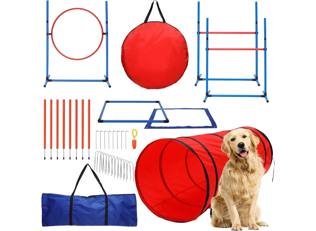 Not only does this agility set provide physical exercise, but it also promotes mental stimulation and improves overall fitness for your dog. This set suits all breeds and skill levels, with customizable heights and various obstacles.