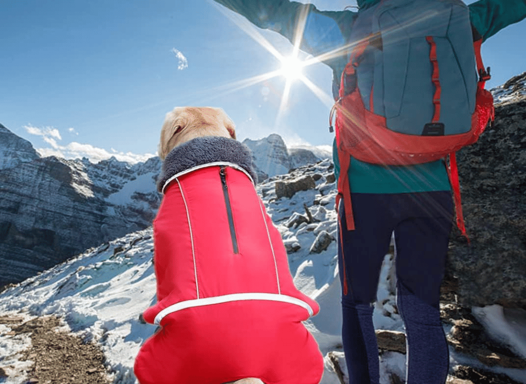 This sleek coat is both water-resistant and warm, with a thick collar to shield their neck from cold air. The back part of the coat is designed with highly visible reflective strips that offer extra safety while you and your pup are out walking at night. The double zipper help keep your pup secure while they’re running around on the leash and won’t snag on their fur. Plus, you can easily adjust the belly area with the plastic buckles on both sides for a snug fit. And when it’s time for a wash, the waterproof nylon fabric can be machine-washed for a quick clean!