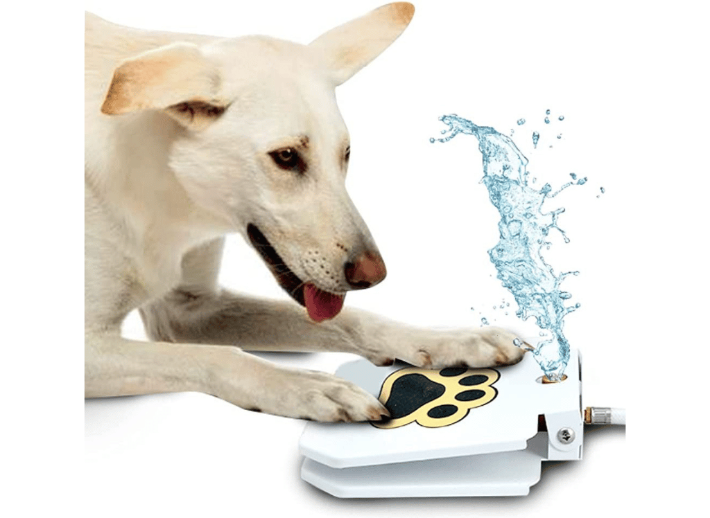 The Dog Outdoor Dog Drinking Water Fountain paw activated dog sprinkler is the perfect solution for pet owners who are looking for an easy and convenient way to provide their furry friends with fresh water. This paw-activated fountain is designed to be easily activated and trained, so your pup can get the hydration they need quickly. Plus, setting up this doggie water fountain outside requires no specialized skill – each purchase comes with a bonus two-way Y hose connector that makes connecting this pet water fountain to your existing water supply simple. The adjustable control valve also allows you to adjust the pressure of the flow as needed.