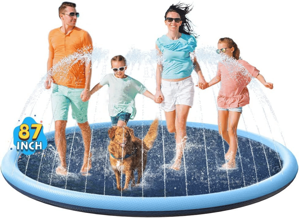 VISTOP Non-Slip Splash Pad is the best sprinkler pad for both kids and dogs to enjoy the summer. Its eco-friendly PVC material without BPA or phthalates makes this product safe, durable and efficient for outdoor fun. The non-slip texture design increases grip so that children and pets can play on water with peace of mind knowing their safety is taken care of. Let your family have a great time outdoors with VISTOP Non-Slip Splash Pad!