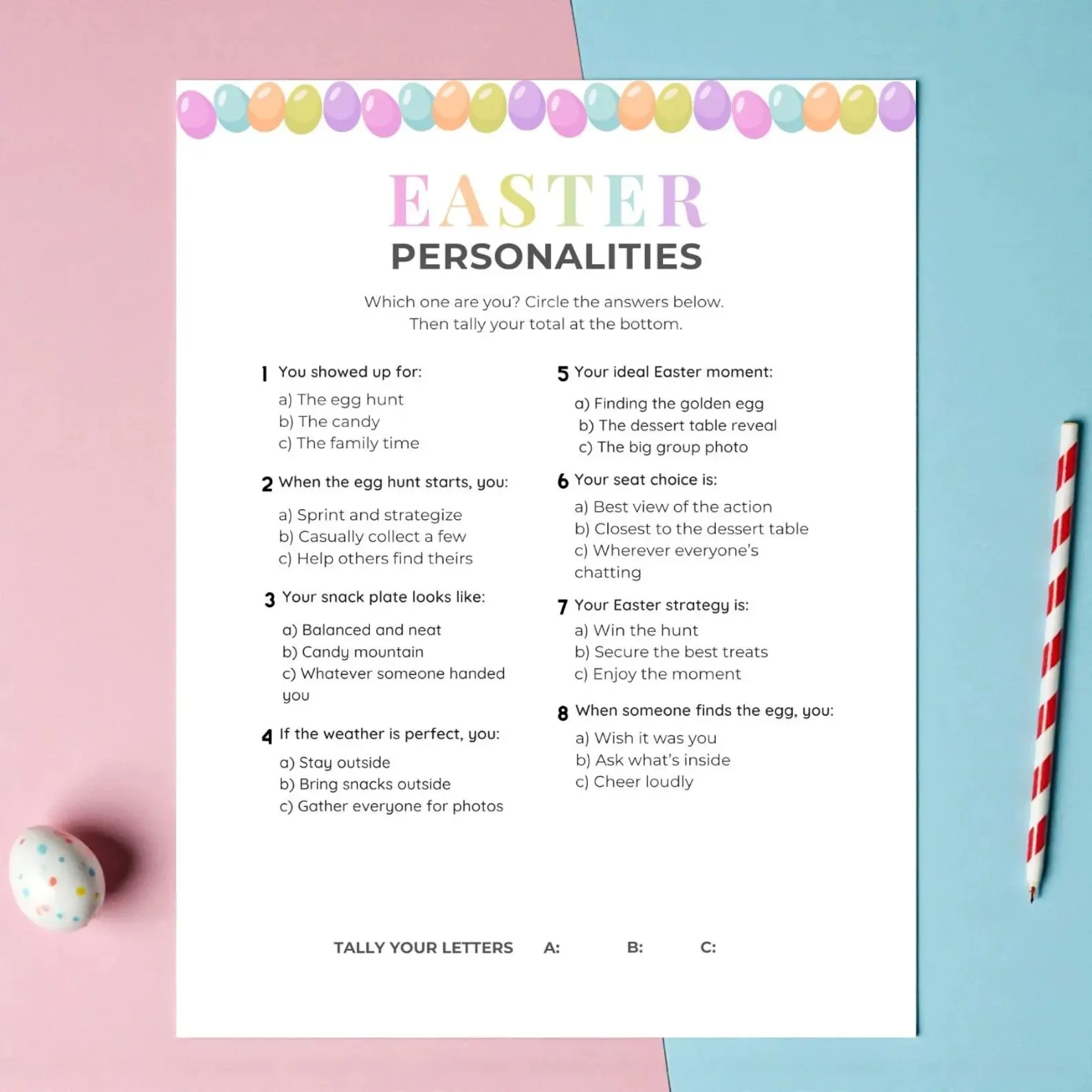 This printable personality quiz is one of the most creative Easter games for adults and kids.