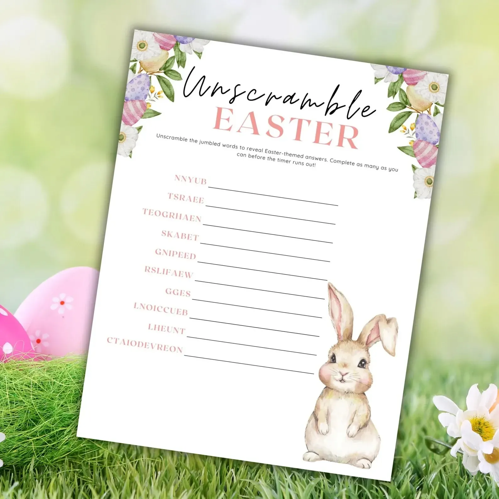 Players must unscramble Easter themed words such as: