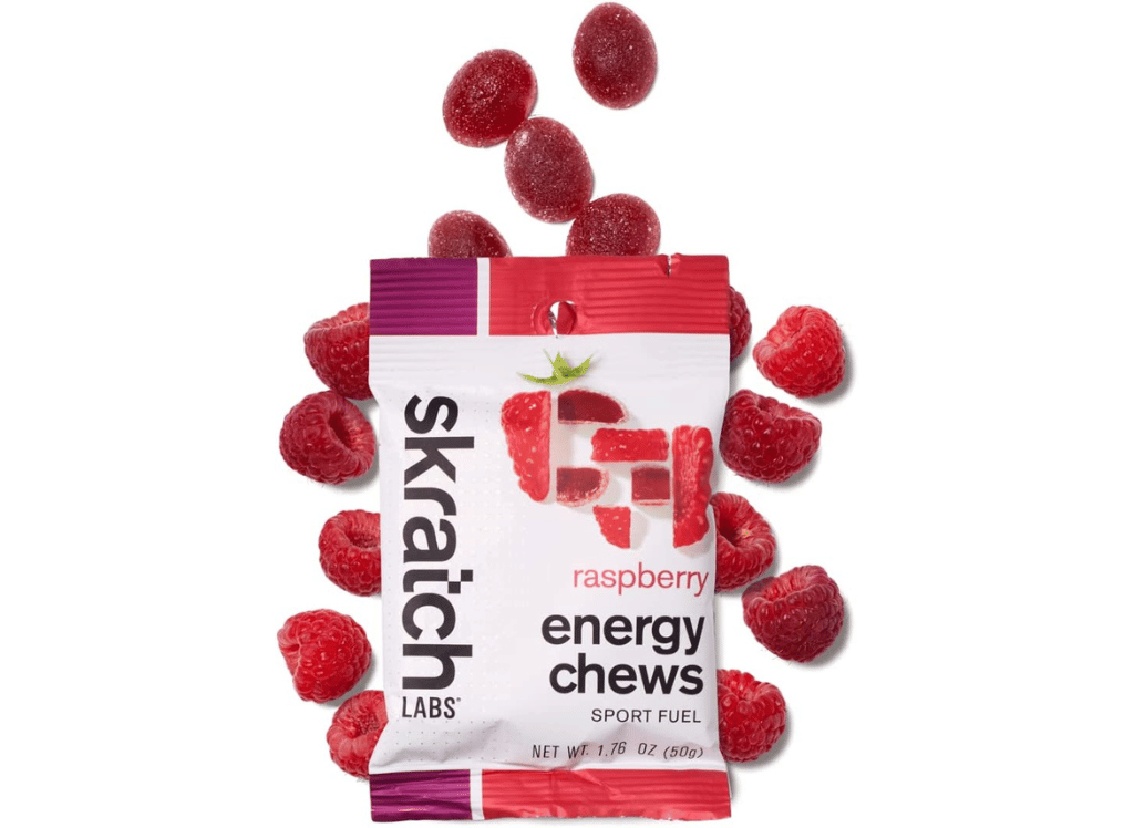 SKRATCH LABS Sport Energy Chews are a delicious and convenient way to sustain your energy levels during physical activity. These raspberry flavored chews contain 70 calories and 20g of carbohydrates per serving, with both glucose and fructose for faster absorption.