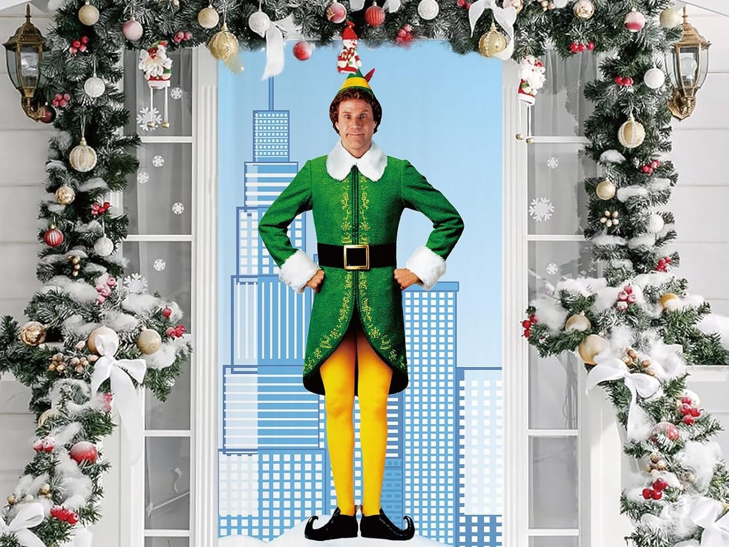 Turn a corner of your party space into a festive photo booth with a Buddy the Elf backdrop. Add props like elf hats, paper snowflakes, and signs with quotes like "I just like to smile, smiling’s my favorite!" 📸