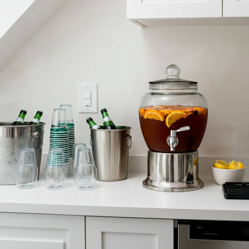 How to do it: Pick a spot for your drink bar. Offer a variety of options to suit different tastes. A signature drink is a fun twist—try a large-batch fall sangria or a spiced apple cider. Also provide non-alcoholic choices like sparkling water with lemon, and of course, plenty of ice.