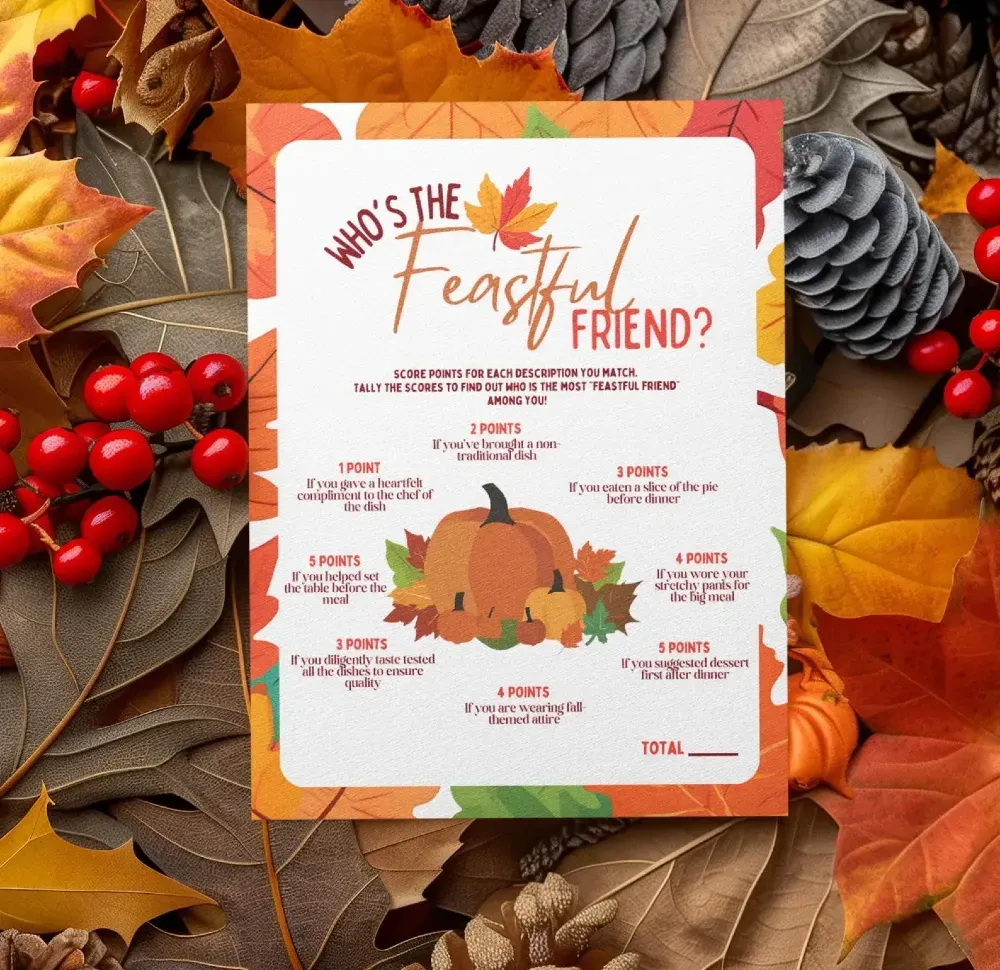Who’s the Feastful Friend? Friendsgiving Printable Party Game (Digital Download)