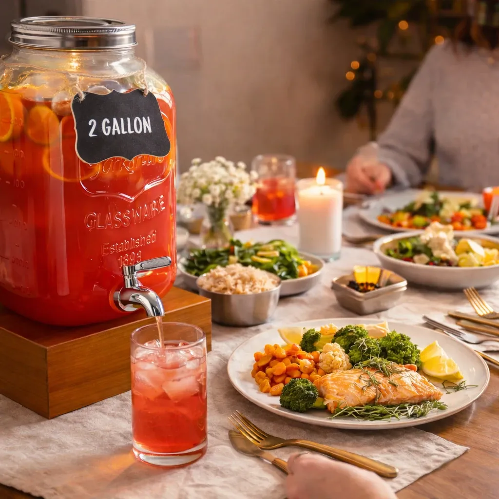 Ideal for water, wine, or a simple signature drink so guests can help themselves.