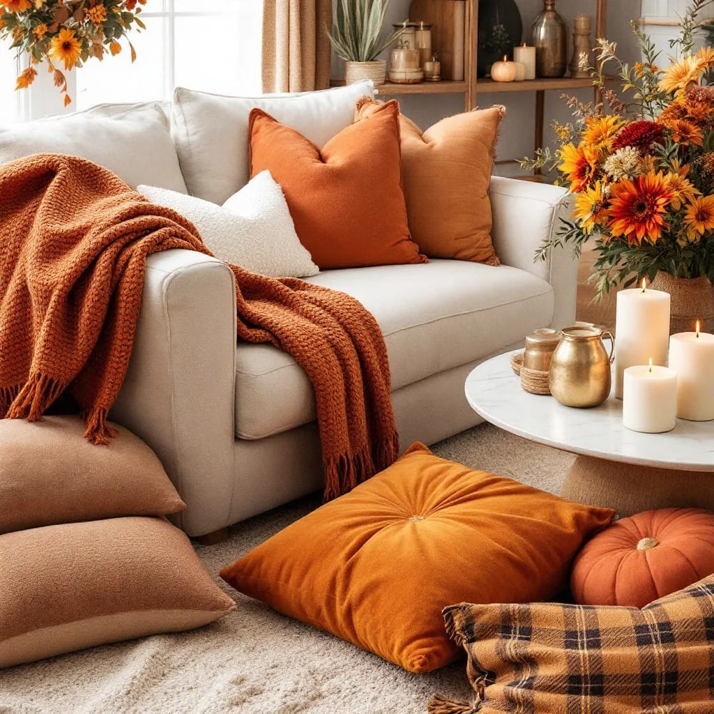 To make your space feel instantly cozier, layer different soft textures. Drape throw blankets over chairs and sofas, and pile on the pillows. Use fabrics like chunky knits, velvet, and flannel in rich autumn colors. This simple step adds physical and visual warmth to your party scene.
