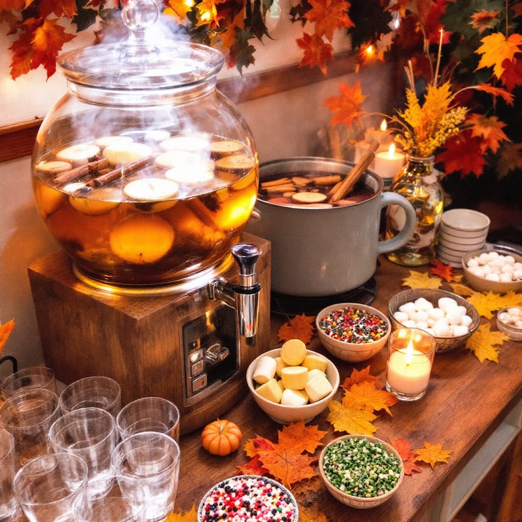 No fall party is complete without the right beverages. Set up a drink station with a variety of options to suit every guest. A large dispenser of apple cider is a must, and you can offer both a non-alcoholic warm cider and a batch of spiked cider for the adults. Mulled wine is another excellent choice, filling your home with the festive scent of spices. Don't forget a hot chocolate bar with marshmallows, whipped cream, and sprinkles for the kids (and kids at heart).
