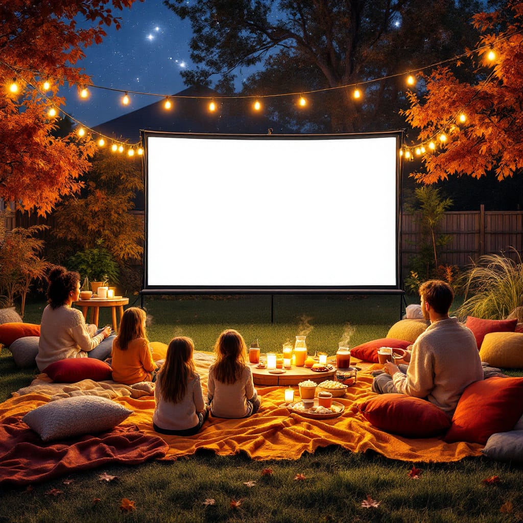 One of the biggest trends is the fall movie night. Set up a projector screen in your backyard, scatter plenty of cozy blankets and pillows, and you have the perfect setting. Choose classic autumn films like Practical Magic or family-friendly options for a party with kids. You can even encourage a dress code based on the movie for extra fun. Serve popcorn, hot chocolate, and warm cider to complete the cinematic experience under the stars.