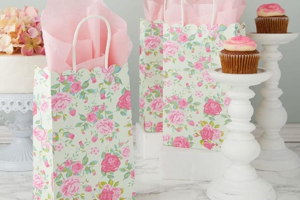 No event is complete without party favors! These Floral Paper Favor Bags are both functional and delightful, showcasing intricate flower designs in soft tones of pink and green. Fill them with goodies or small gifts to send your guests home happy.