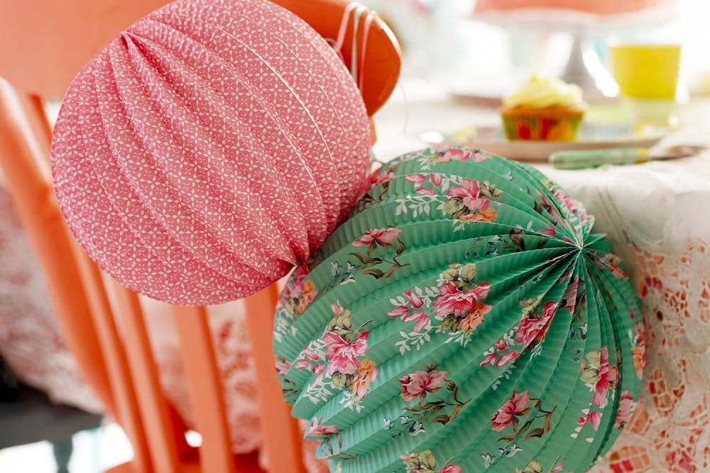 Add a pop of color and texture to your ceiling with these Floral Paper Lanterns. They come in a range of shades, like charming pink and vibrant green, with delicate floral patterns that catch your eye. These lanterns are lightweight, easy to install, and perfect for tying your floral party theme together.