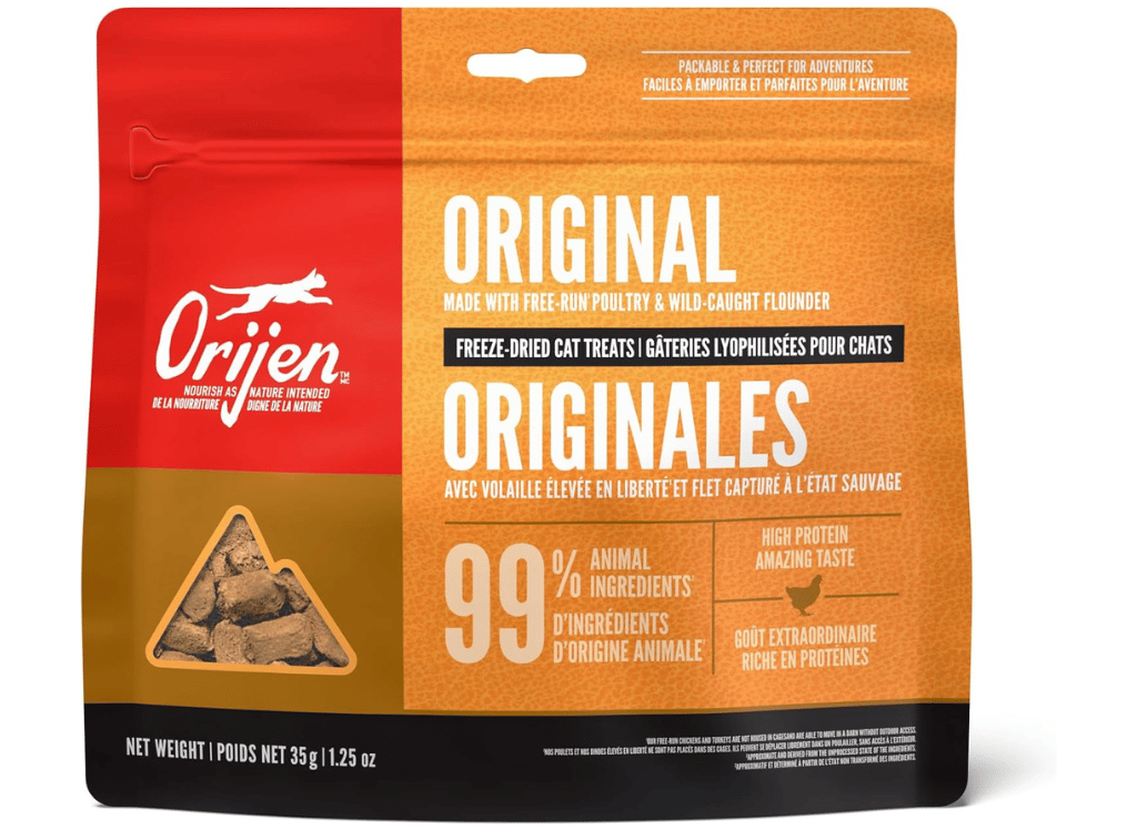 Get ready to see your cat leap for joy with ORIJEN Original Freeze Dried Cat Treats! These bite-sized treasures are crammed with protein-packed goodness and the flavors of the wild that'll have your feline hunter wide-eyed and bushy-tailed. Best part? They're like a mini, guilt-free feast with only 1 calorie each—perfect for training or just because your kitty is the best!