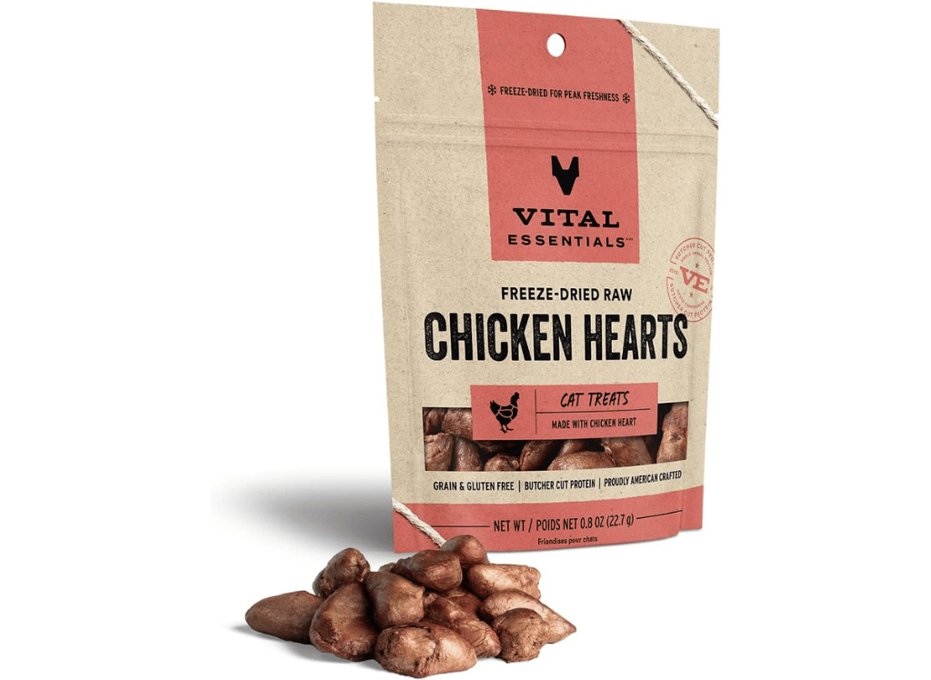 Vital Essentials truly 'meats' the mark with their Freeze Dried Raw Single Ingredient Cat Treats that your furry friend will absolutely adore! They load up each treat with high-quality, protein-rich chicken hearts that'll make your cat feel like the lion they think they are. And because they're crafted right here in the USA without any of those weird additives or fillers, you're not just giving a treat, you're giving the gift of purr-fect health!