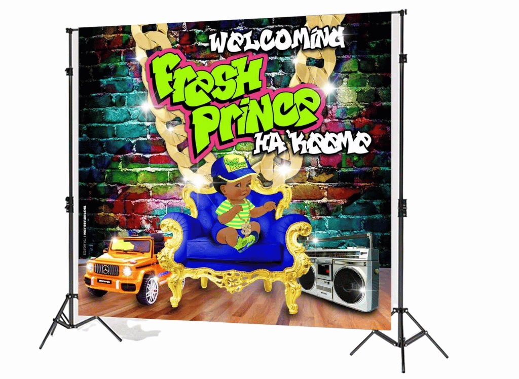 Handmade and massive, this backdrop ranges from a cozy 5ft by 5ft to a 'go big or go home' 10ft by 10ft. It's as versatile as Will's wardrobe from the show, and it's up on Etsy with free shipping. So get ready to pose, pout, and pop it like you're on the cover of a 90s hip-hop album because this backdrop is about to make your baby shower the talk of Bel-Air!