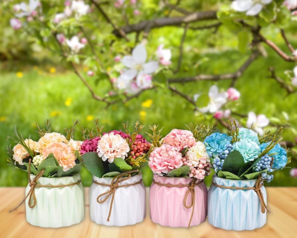 XONOR Mini Fake Hydrangea Flowers in Pot