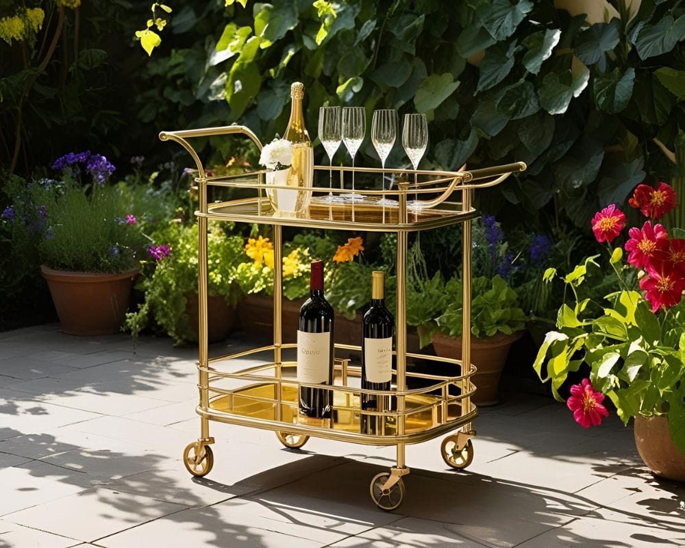 Place your bar cart on wheels to easily move it to wherever your guests are mingling. A pretty bar cart isn’t just practical; it’s an eye-catching centerpiece of your event.