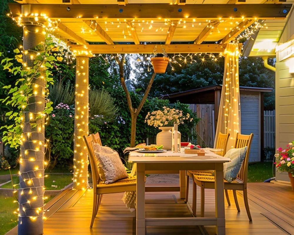 - Bistro-Style Lighting: Drape weatherproof café lights overhead to mimic the cozy charm of an alfresco bistro.