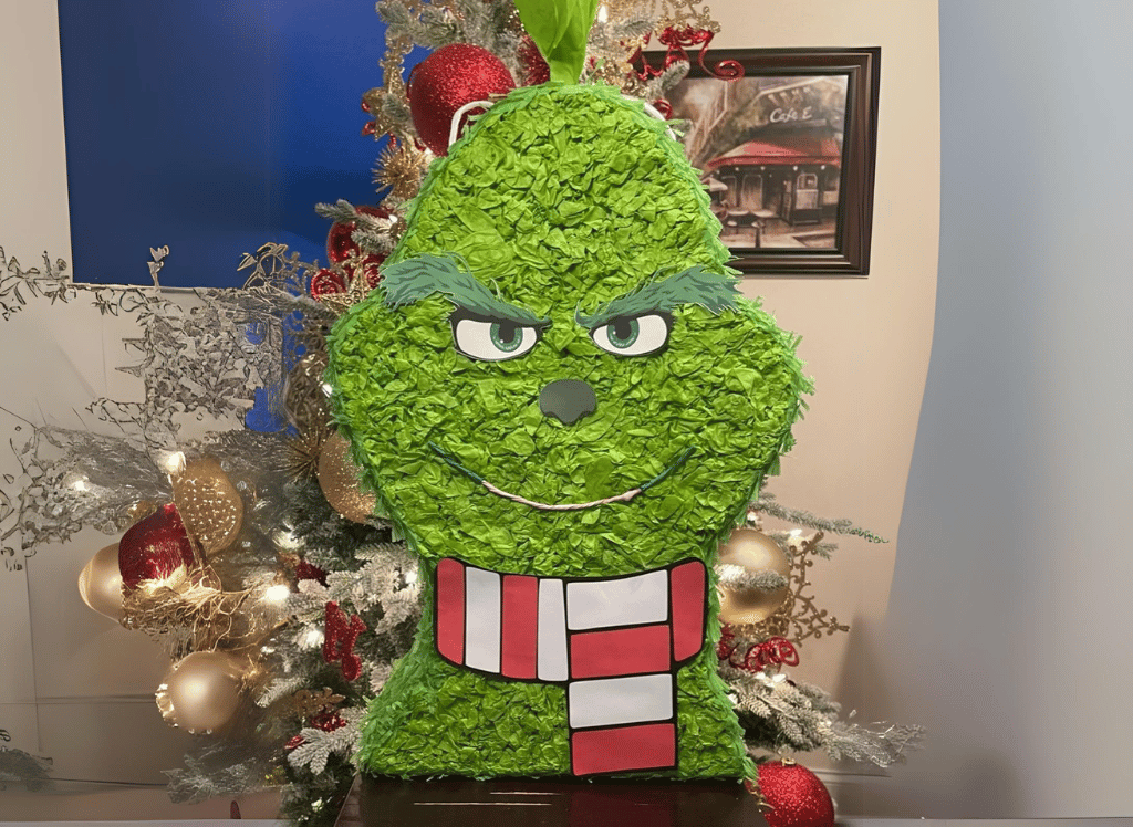 Make your celebrations pop with our Grinch Pinata! Tailor-made to fit your festive desires, this 24-inch green hero is here to delight both kids and adults. Handcrafted with planet-loving materials, it's a surefire way to keep the party eco-friendly and fun without any unnecessary "ba humbugs"!