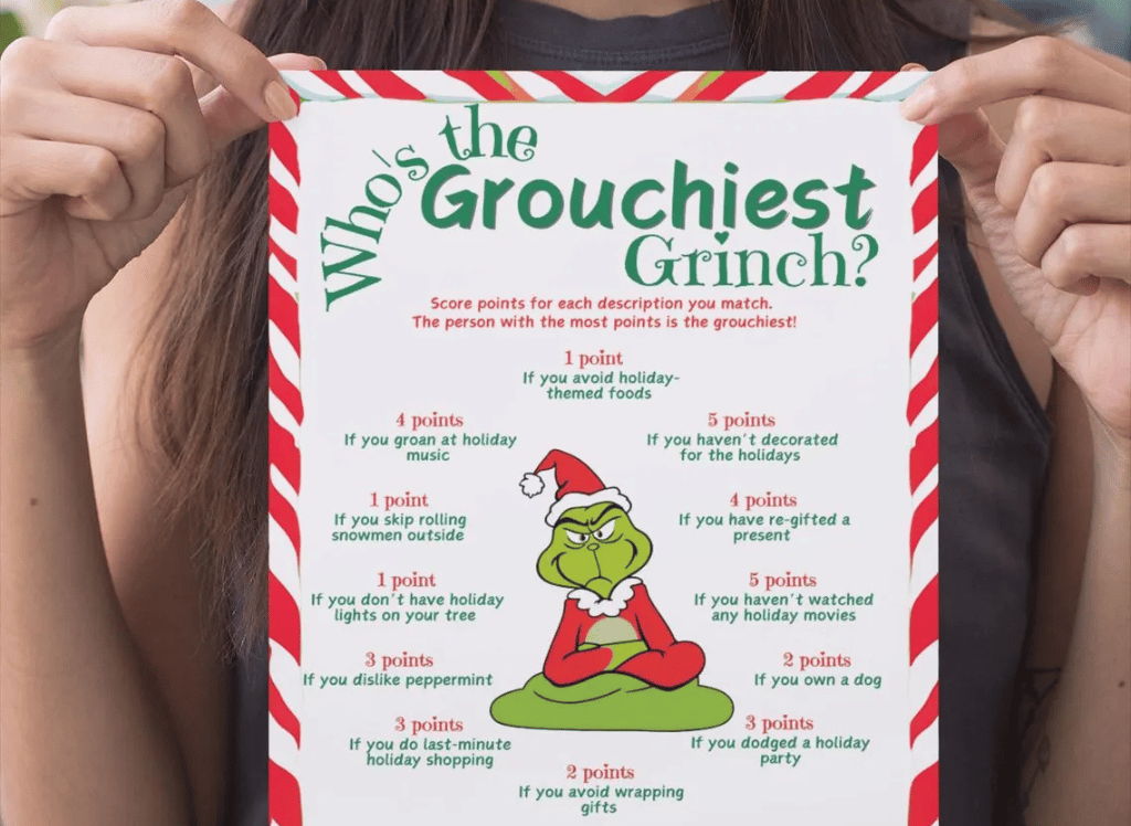 Unleash the spirited creature within with the "Who's the Grinchiest Grinch?" Party Game! An absolute must for ferreting out the most grouchy Grinch in attendance. Easy to download and devilishly fun, it's the perfect pastime to determine who has the most green in their heart this season!