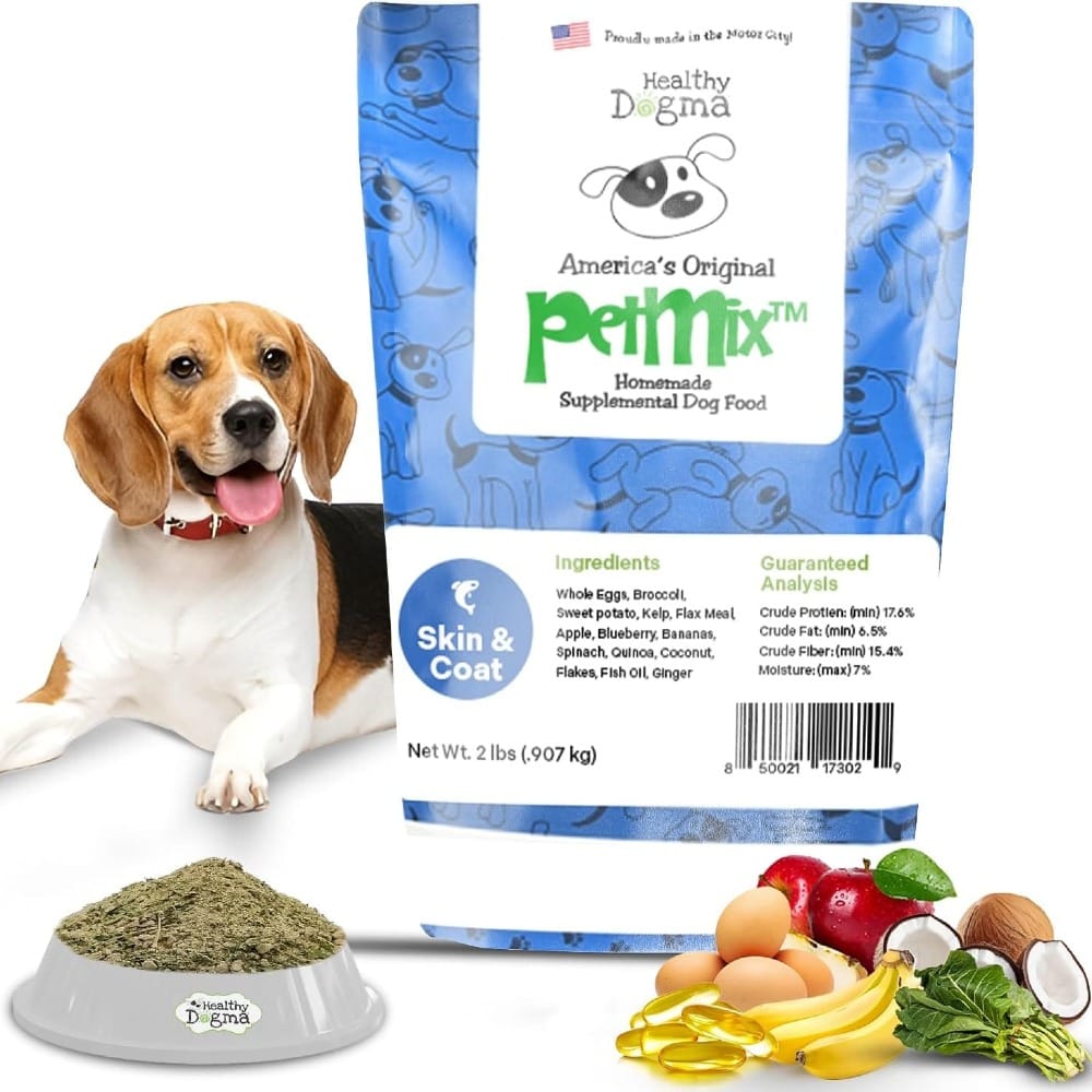 Packed with coconut flakes, whole eggs, oats, pumpkin, and flax, Healthy Dogma PetMix helps your dog achieve a shiny, healthy coat while alleviating itchy skin and hotspots. Plus, its nutrient-rich formula supports immunity and gut health.