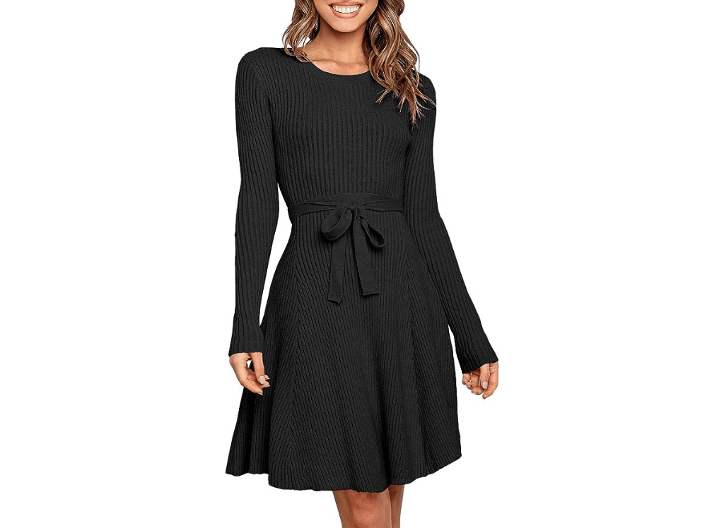 A cozy knit dress could be a great option for a more casual holiday gathering.