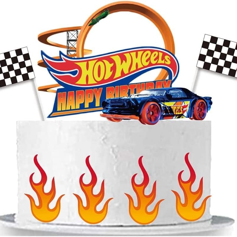 What’s a Hot Wheels party without show-stopping desserts? Instead of customizing the entire cake, opt for vibrant Hot Wheels-themed cake toppers to add excitement. Use miniature Hot Wheels cars, racing loops, or ramp designs as toppers to transform a simple cake into a thrilling centerpiece.