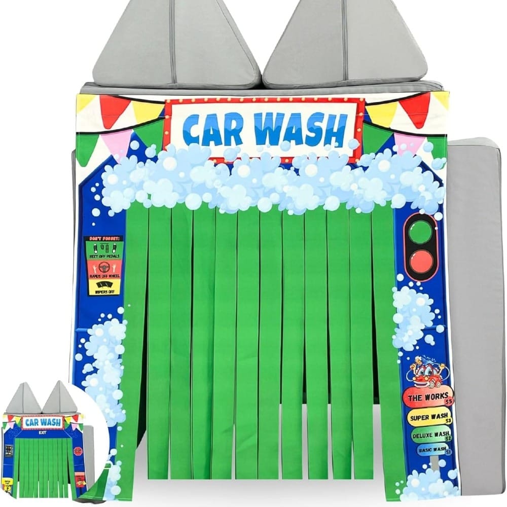 Rev up the fun at your Hot Wheels party with an interactive mini car wash station that integrates the exciting CAR WASH DOUBLE PLAY PANEL. Start by setting up small tubs or containers filled with soapy water for kids to clean their toy cars, and provide mini sponges, brushes, or cloths for extra cleaning action. Place the CAR WASH DOUBLE PLAY PANEL as the centerpiece of the station to elevate the experience.