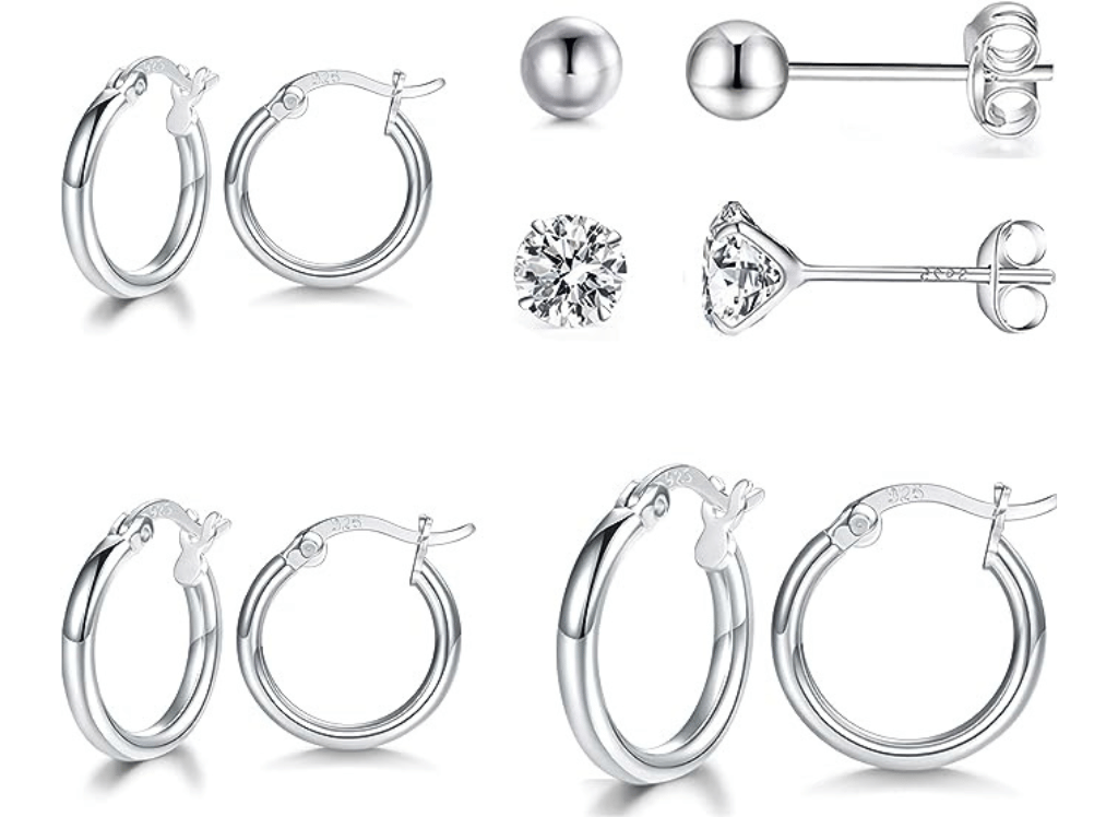 These stylish and hypoallergenic earrings are crafted from 925 sterling silver with high-quality platinum plating and a polished finish, they won't lose their shine, no matter how much they're worn. Plus, they're nickel-free and perfect for sensitive ears, so your grown-ups and kiddos alike can wear them with confidence. With their upgraded huggie hinged design, these earrings are a cinch to put on and take off, and they come in three different sizes so everyone can find a fit that's just right. Plus, for a bonus, there's enough earrings here for the whole family, with each set coming with two small ball earrings and one CZ stud, perfect for any occasion!