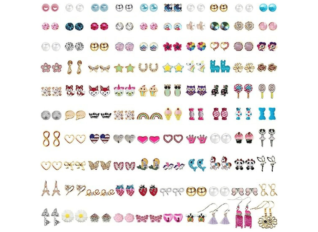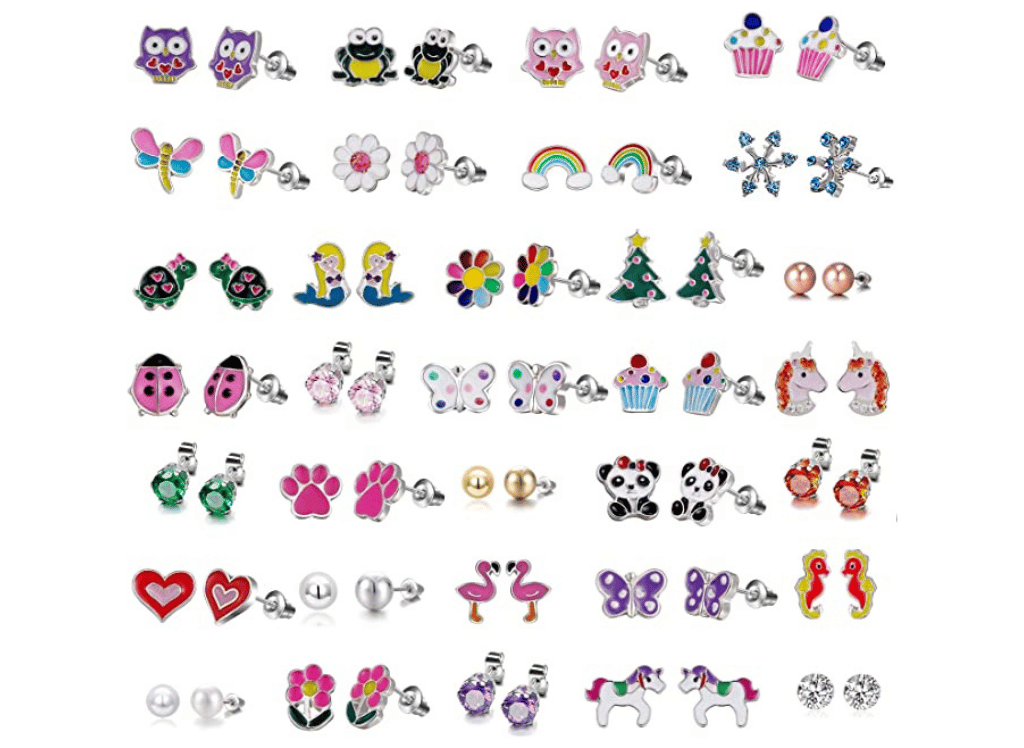 With an array of colors, styles, and designs, your child will be quite the fashion connoisseur when sporting these lovely earrings. From the bright and vibrant Pink CZ earrings to the cute Sunflower earrings, your kid will always be at the forefront of fashion with these unique pieces. With 33 individual pairs, your little one will have plenty of options to choose from for whatever outfit they decide to wear. But style isnât the only thing these earrings have going for them. Each of the earrings is made from premium hypoallergenic material, meaning that your childâs ears are safe from any potential infection or irritation!