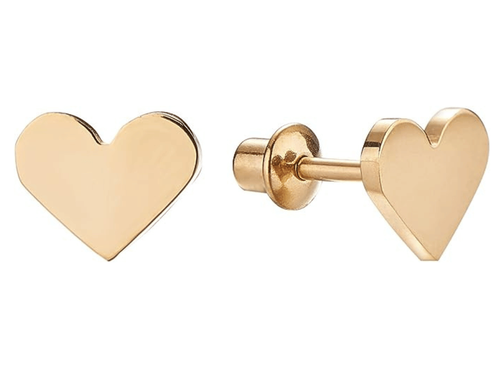 2. Regetta Jewelry 18k Gold Plated Screw Back Heart Stud Hypoallergenic Earrings for Kids
