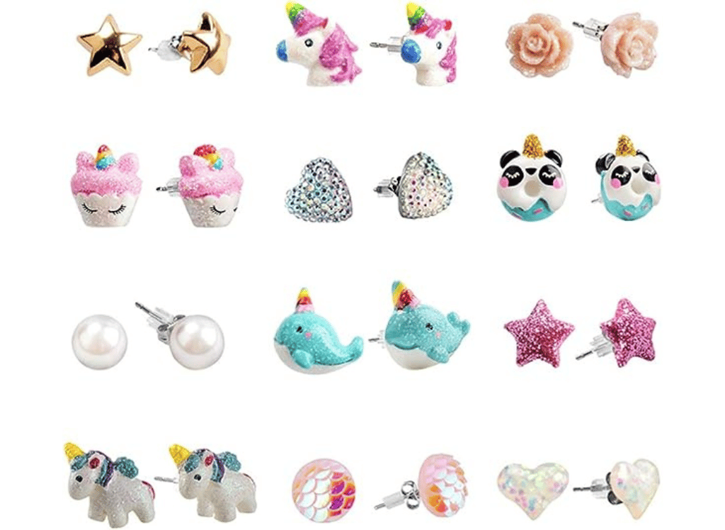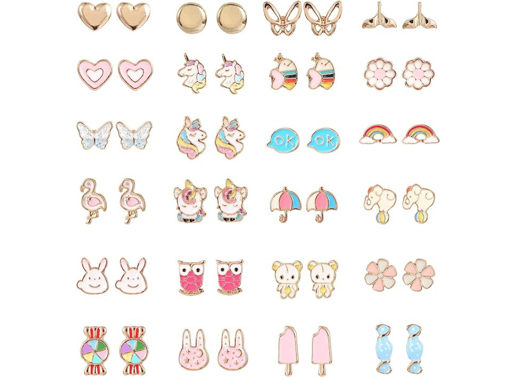 These earrings offer all the colors and styles to fit your little girl's tastes and preferences. From funny animals like unicorns and fluffy bears, to interesting fashion elements such as flamingos and stars, this set has it all! Constructed with high quality 316L stainless steel posts, these earrings are not only cute and stylish, but also safe and hypoallergenic, so you can rest assured these won't hurt your little gir!