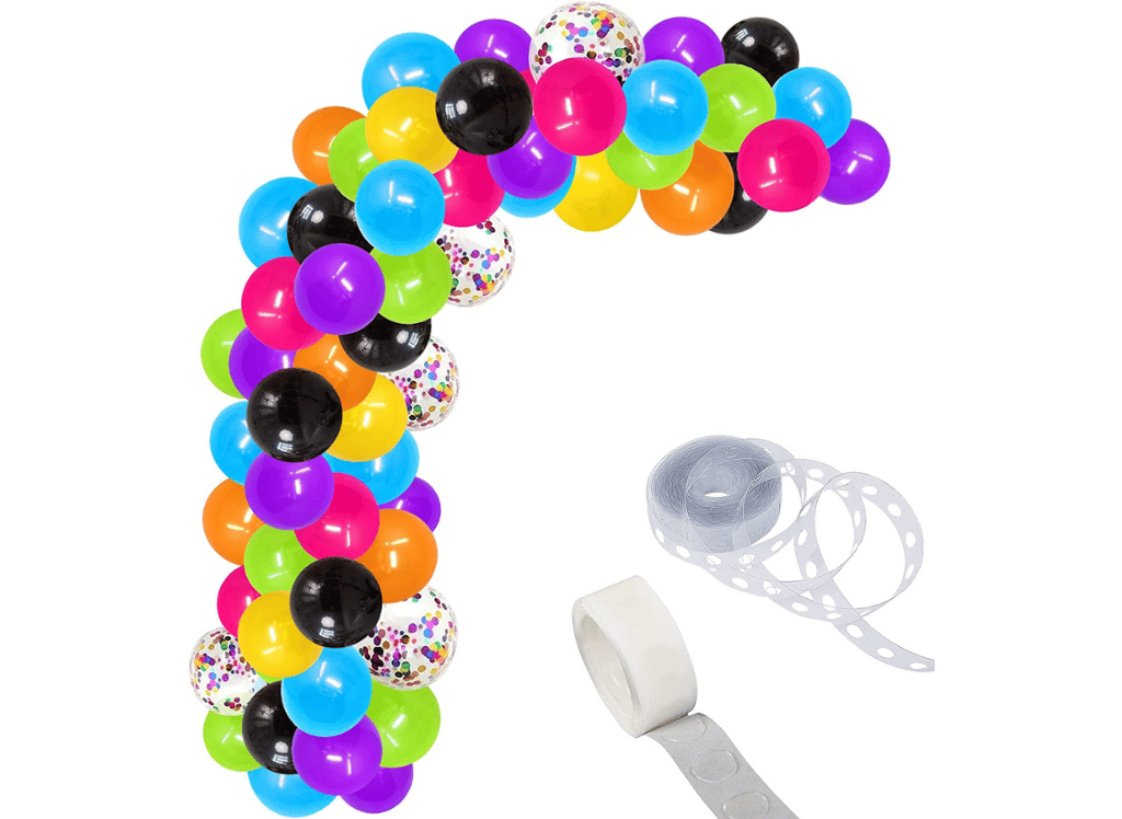 This balloon set include 117 pieces of 12 inch balloons and come in 8 different colors: blue, green, purple, rose red, orange, yellow, black, and a mix of confetti balloons, for a truly vibrant and festive look. Set up is simple, with a roll of balloon decoration strips and bonding points for easy assembly. Once you get your balloons set up, you'll bring a smile to everyone's face and get your party started!