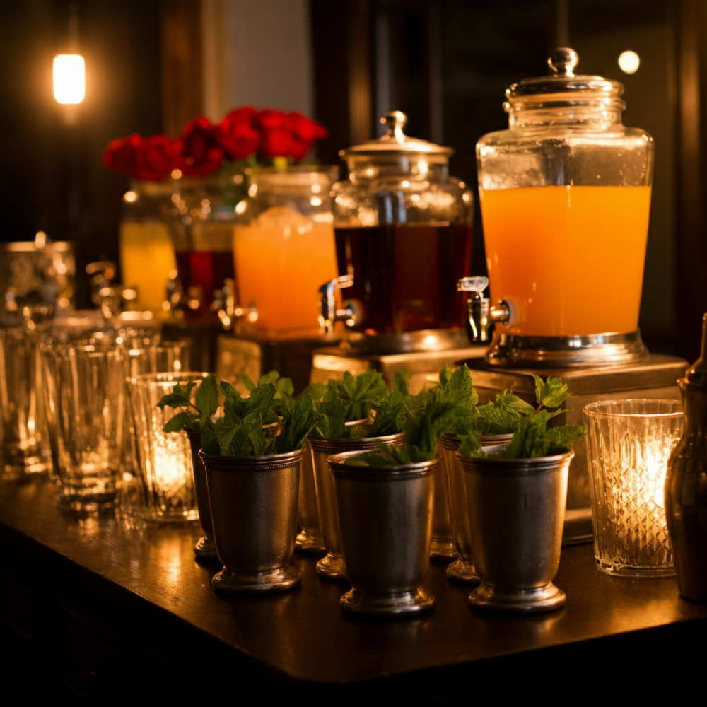A big part of the Kentucky Derby experience is indulging in southern delicacies, classic cocktails, and delicious recipes. Here are some party ideas for curating the perfect derby menu that aligns with your party theme. Ensuring the menu complements the overall theme will create a cohesive and festive atmosphere for your guests.
