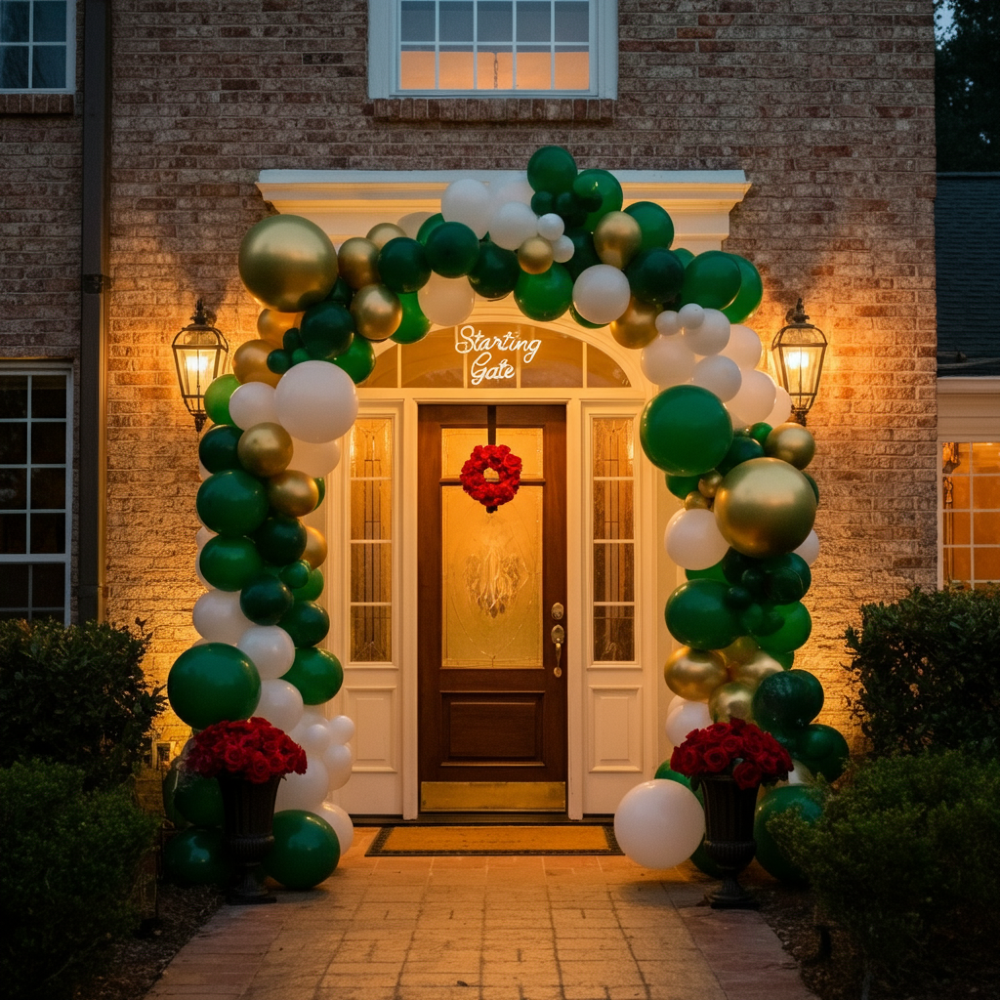 - Mark your front door as the "Starting Gate" with a cute DIY sign or balloons in derby-themed colors like green, white, and gold. Shop Derby-Themed Balloons and Signs