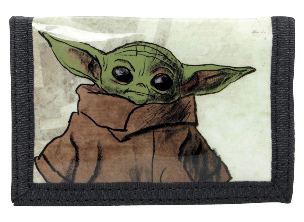 The Mandalorian The Child Baby Yoda Card and Coin Tri-Fold Wallet is the perfect gift for any fan of Star Wars, Yoda, and The Mandalorian. This wallet is designed with a hook and loop closure to keep all items safely secured inside. It features three compartments for cards, coins, and other small items.