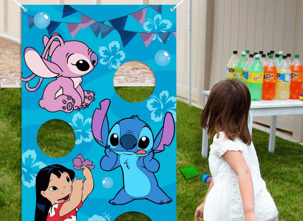 Looking for a party activity that entertains kids and adults alike? This toss game is an absolute favorite! With a large Stitch banner and bean bags, itâs perfect for sparking some friendly competition.