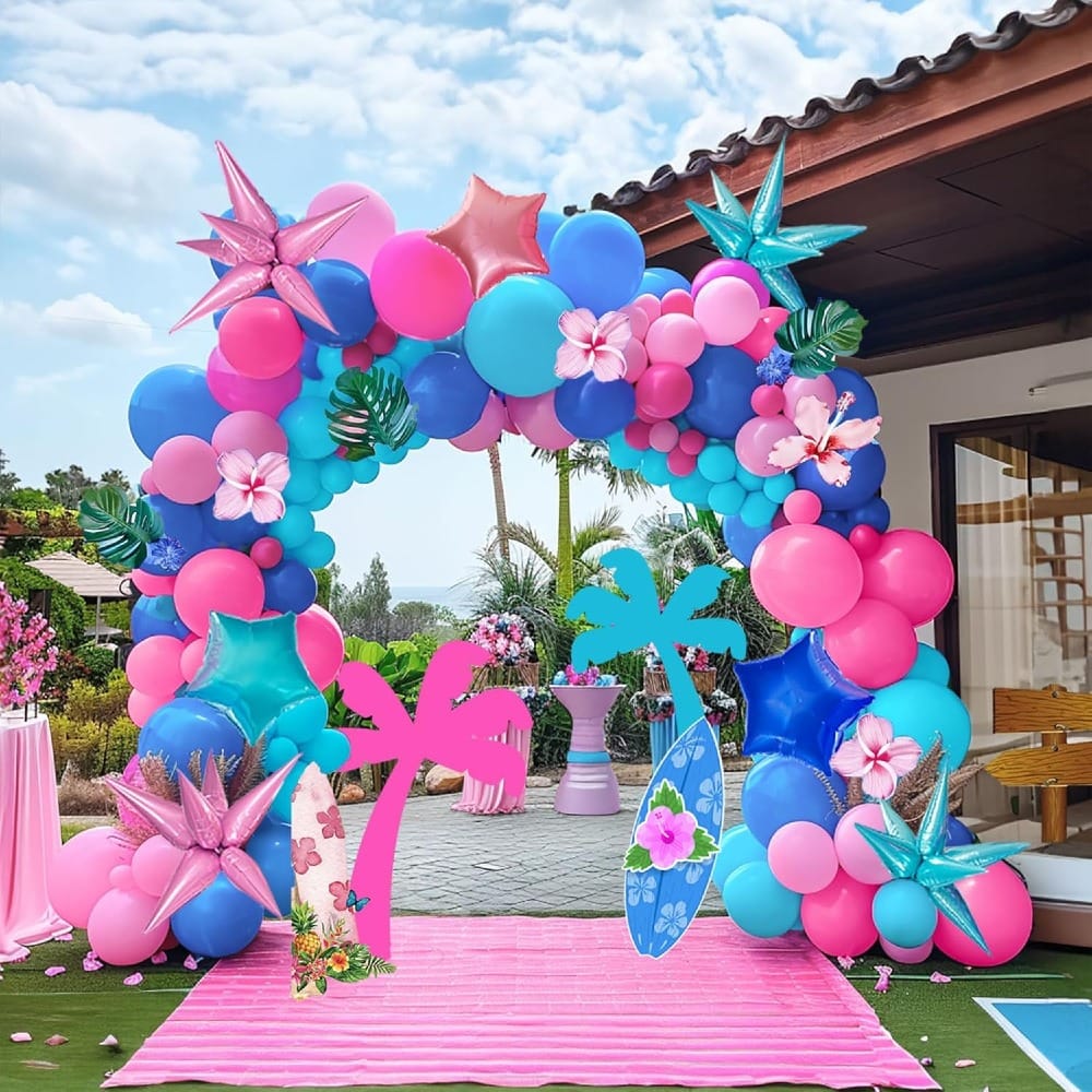 Whatâs a party without balloons? This vibrant garland kit takes your decorations to the next level with over 100 latex balloons, colorful palm leaves, and tropical flowers. đș Use it to create a stunning centerpiece, an arch, or a backdrop for party photos!