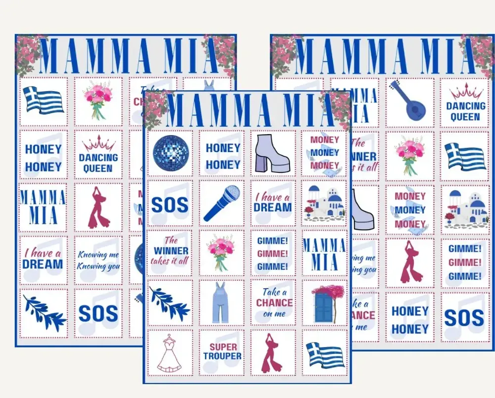 - Make bingo cards featuring ABBA song titles, iconic quotes from the movies, or even visuals like disco balls and Greek villas.