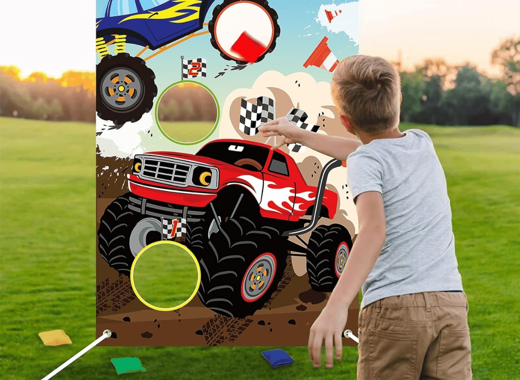 Games like 'Pin the tail' and 'Toss the bean bag' can be great fun and keep the kids engaged. You might also consider a Monster Truck viewing party if you have access to relevant videos or movies.