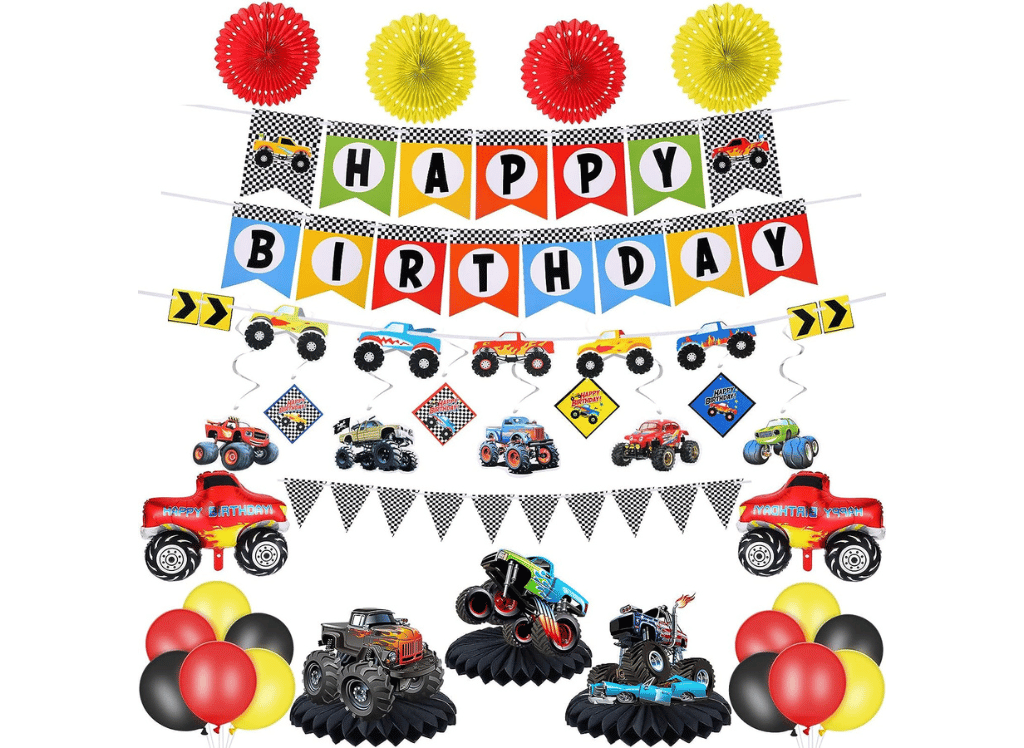 Use lots of bold, bright colors, checkered flags, and, of course, Monster Truck images. Themed tablecloths, banners, balloons, and centerpieces can really set the stage.