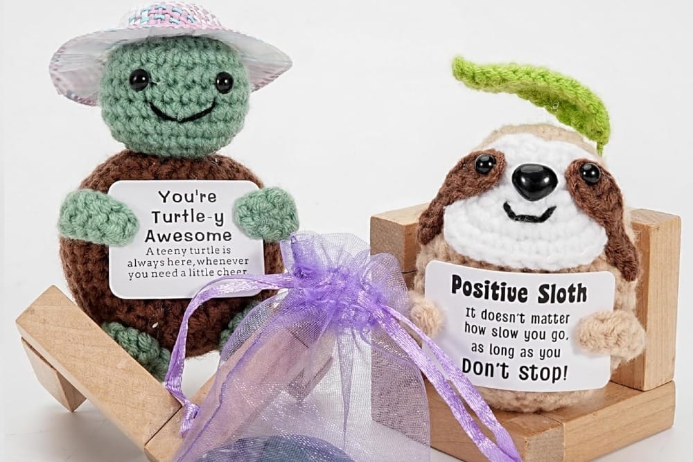 One ideal option is this Two-Pack of Positive Crochet Animals. These adorable crochet creatures come with motivational signs, making them a perfect reminder that theyâre never alone during challenging times. The compact size and positive affirmations ensure theyâll fit beautifully in any dorm room or study space, providing a sense of reassurance and encouragement.