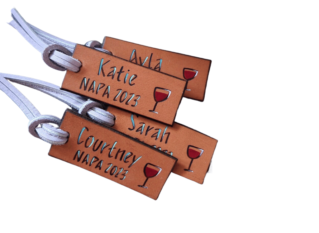 The Napa Wine Glass Tag is not just any ordinary tag, oh no! It's a little piece of craftsmanship that adds a dash of uniqueness to your wedding vibe. It’s handcrafted from bona fide leather, painted with the finest leather paint, and conditioned to give it a polished, refined look. But, it doesn't stop there! This little gem comes in a rustic 3" Accent Tag size, ideal for lacing around the stem of your wine glasses. What's more? Each tag is etched with vintage stars, adding a sprinkle of celestial charm to your special day.