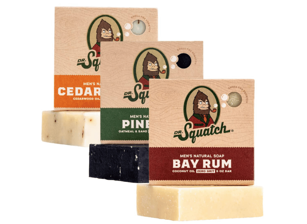 Introducing Dr. Squatch's All Natural Bar Soap for Men variety pack – the perfect way to keep your manly appeal alive! Their all natural cold process soap is made with only nourishing ingredients like coconut oil, shea butter and kaolin clay. This 3-pack features three of our signature scents: Pine Tar, Bay Rum, and Cedar Citrus; each one uniquely invigorating so you can feel refreshed from morning until night. No harsh chemicals or synthetics are ever used in any of Dr. Squatch's products, so you can trust that what you're putting on your body is 98-100% natural in origin. Feel clean and smell amazing with this all-natural soap variety pack - a must have for any modern gentleman!