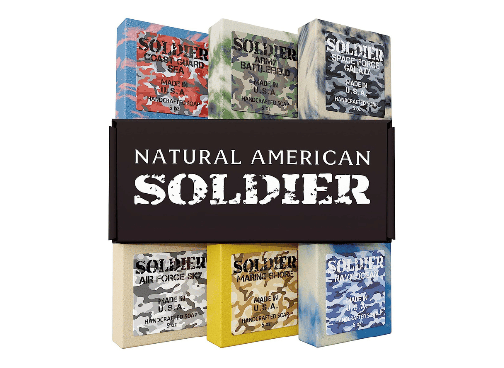 Natural American Soldier Men’s Bar Soap is a great product for men who want to nourish their skin and smell manly at the same time. Each bar contains essential oils, organic shea butter, ground oatmeal, activated charcoal, lye and sea salt as well as being sulfate-free, paraben-free and phthalate-free. This soap is handmade in the USA using cold process method and every bar is unique with its own natural scent. It includes (6) 5 oz bars of men’s soap which each represent a branch of the armed forces: Air Force Sky, Army Battlefield, Coast Guard Sea, Marine Shore, Navy Ocean and Space Force Galaxy.
