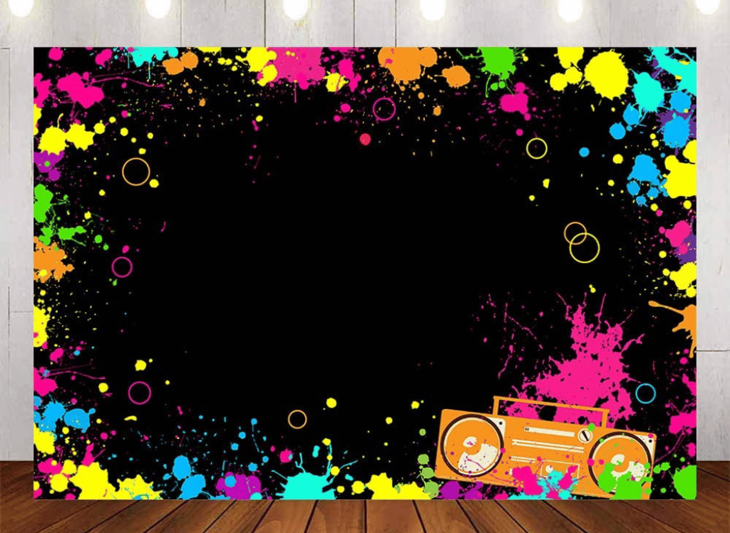 This eye-catching backdrop is made of vinyl fabric, giving it a soft and smooth feel when touched. It measures 82 inches in width by 59 inches in height and will make any room glow with its vibrant colors. With this background, your guests are sure to be impressed and have an unforgettable experience at all your neon parties!