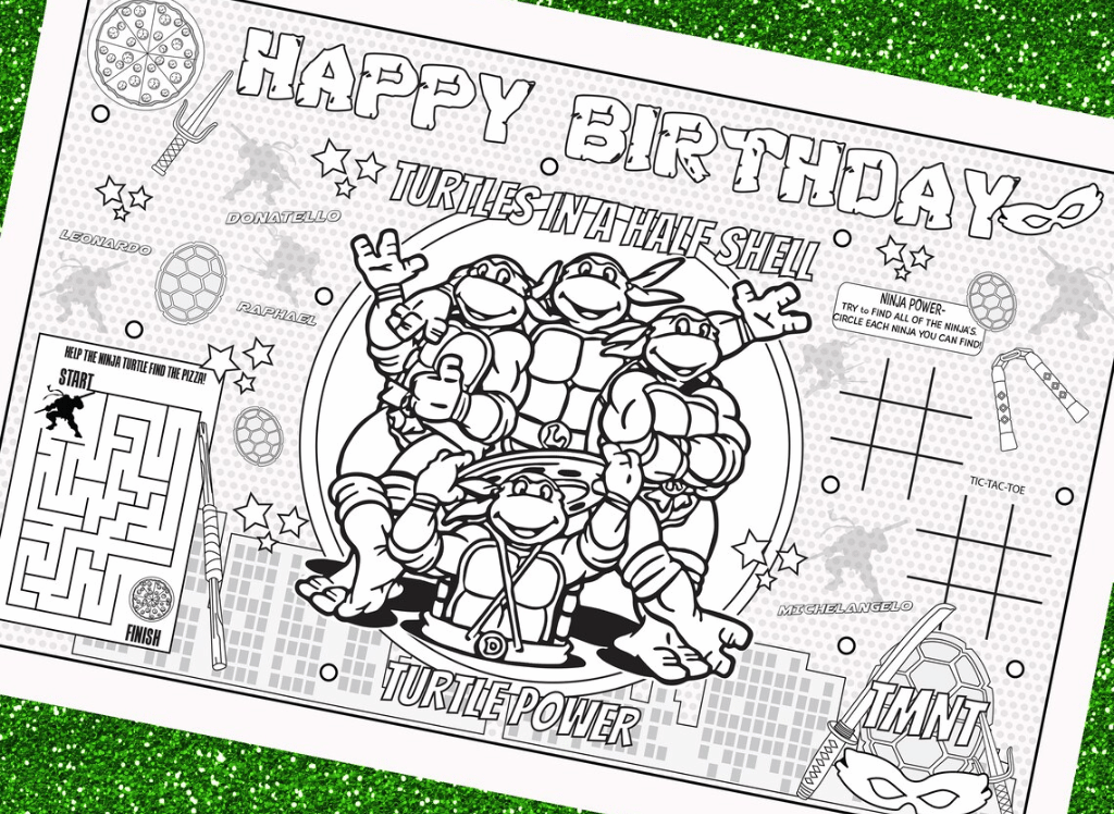 Let's get the party shell-started with the rad Teenage Mutant Ninja Turtles-Kids activity placemat! 🎉 It's a digital download, so you can print these bad boys right from your sewer-lair – I mean, home. Throw in some crayons and watch the kiddos channel their inner Michelangelo, decorating their table-scape with turtle power! 🖍️🐢✨