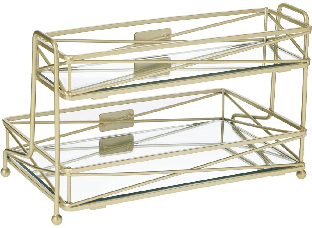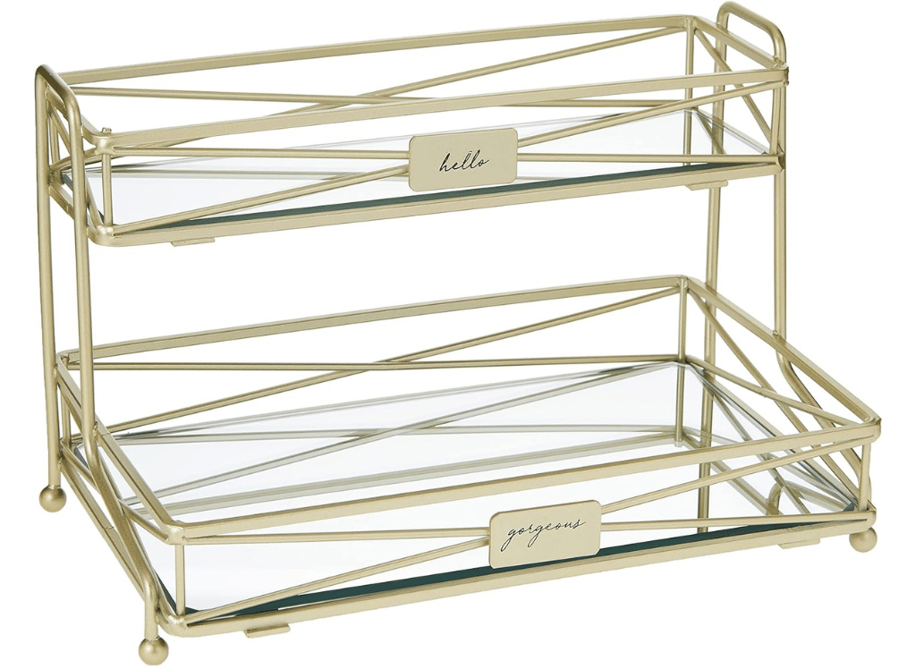 The mirrored finish adds a touch of luxury and elegance to any room. Its satin gold vanity tower design is sure to catch the eye and become a stylish decor piece in its own right. Imagine the convenience of having all your beauty essentials in one place, beautifully displayed and ready for use.